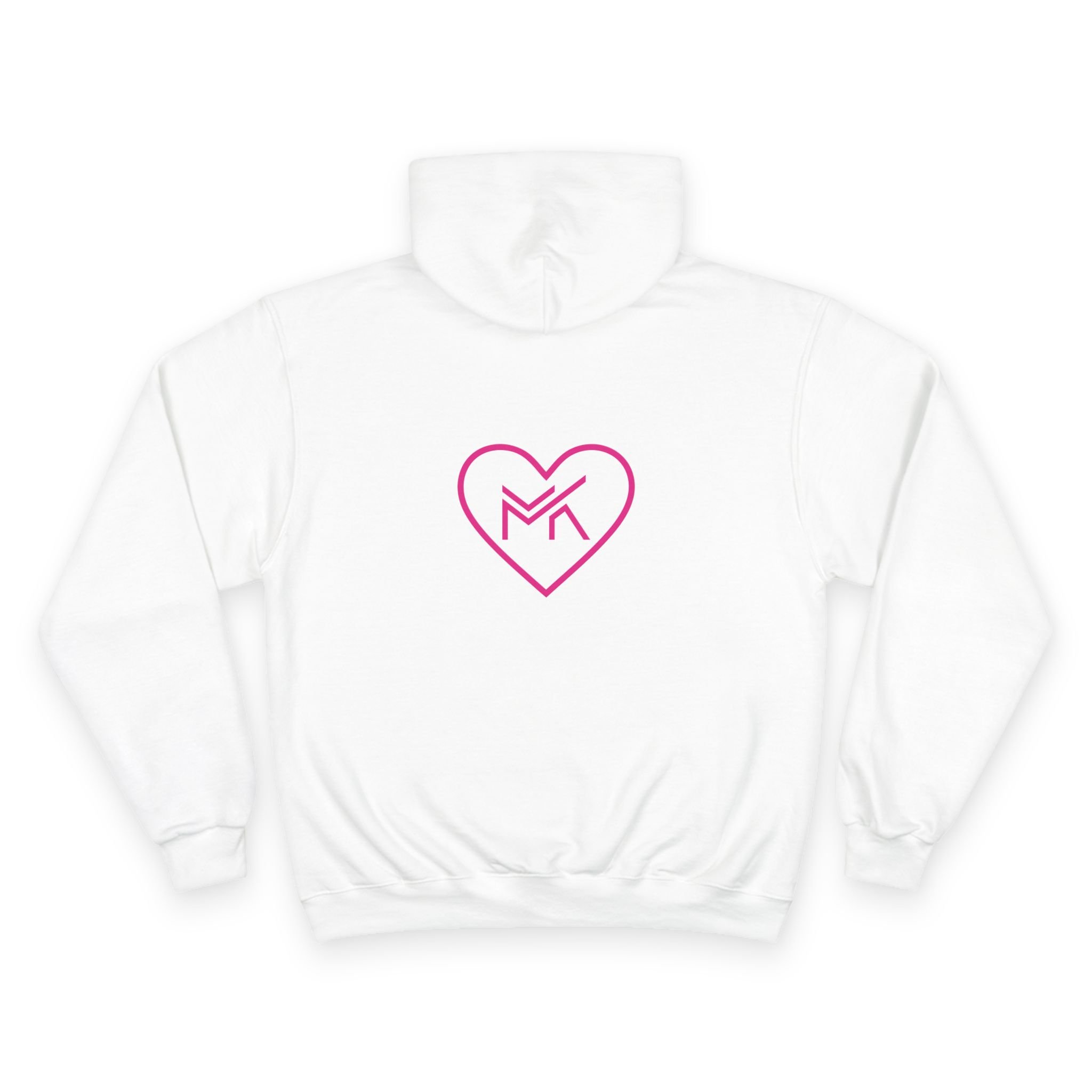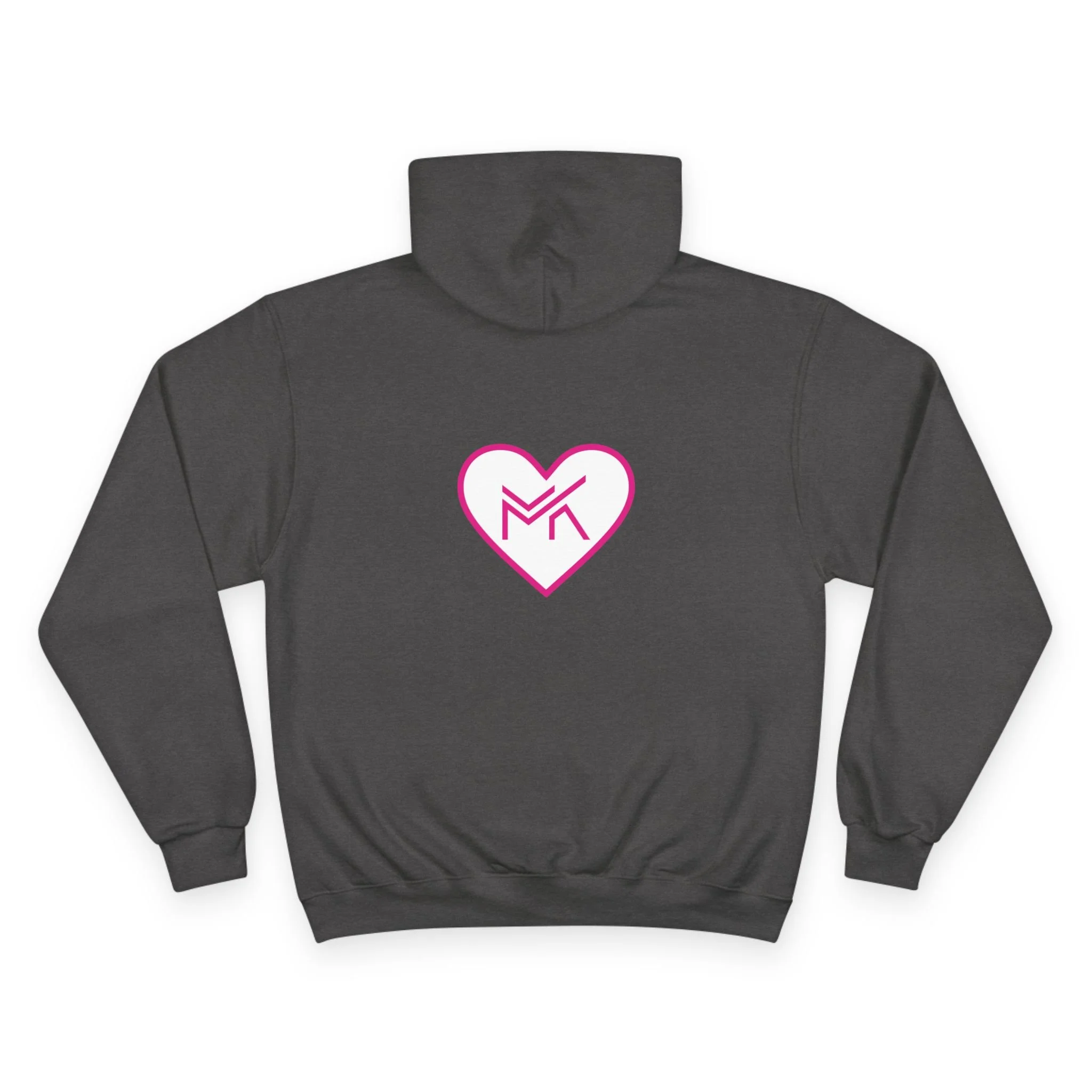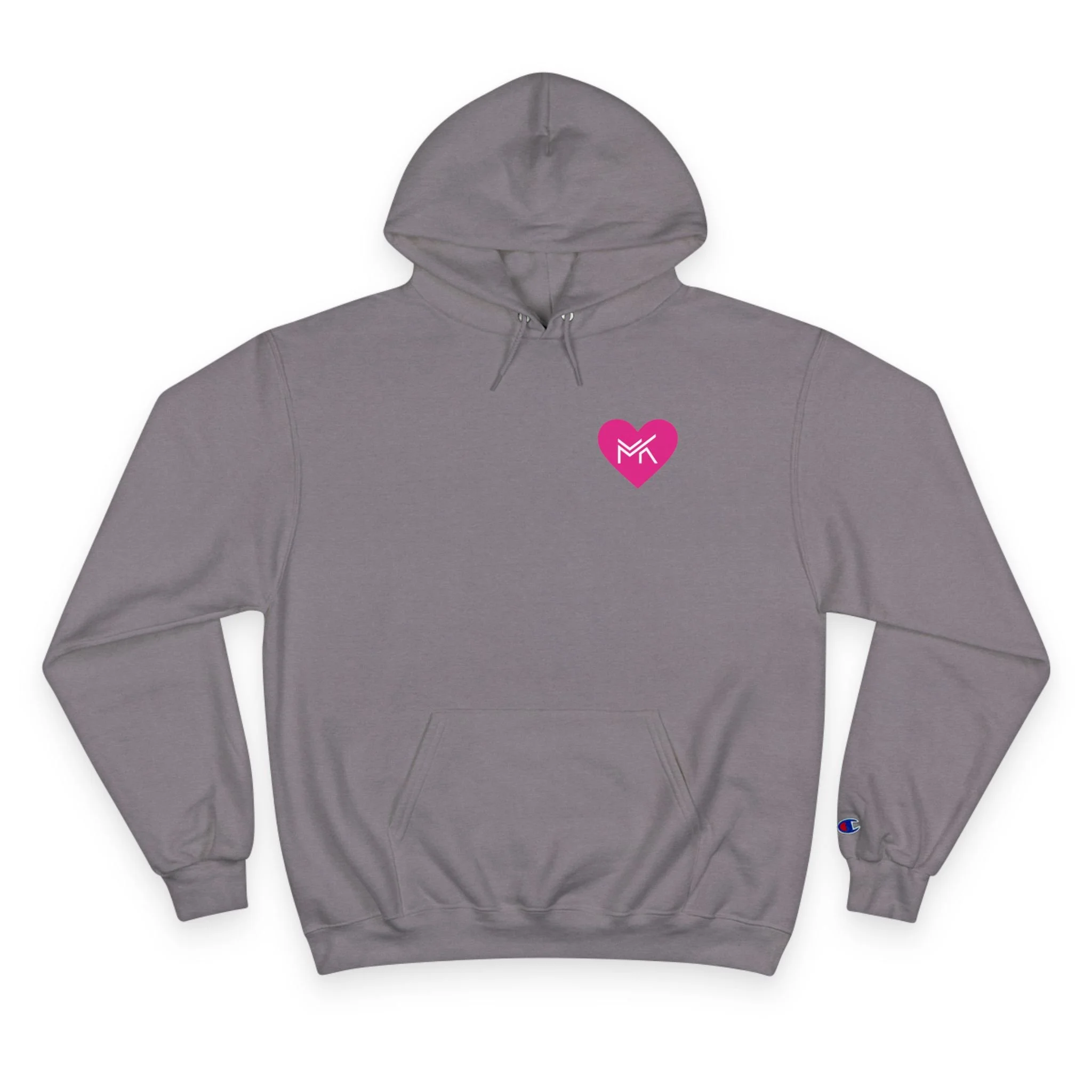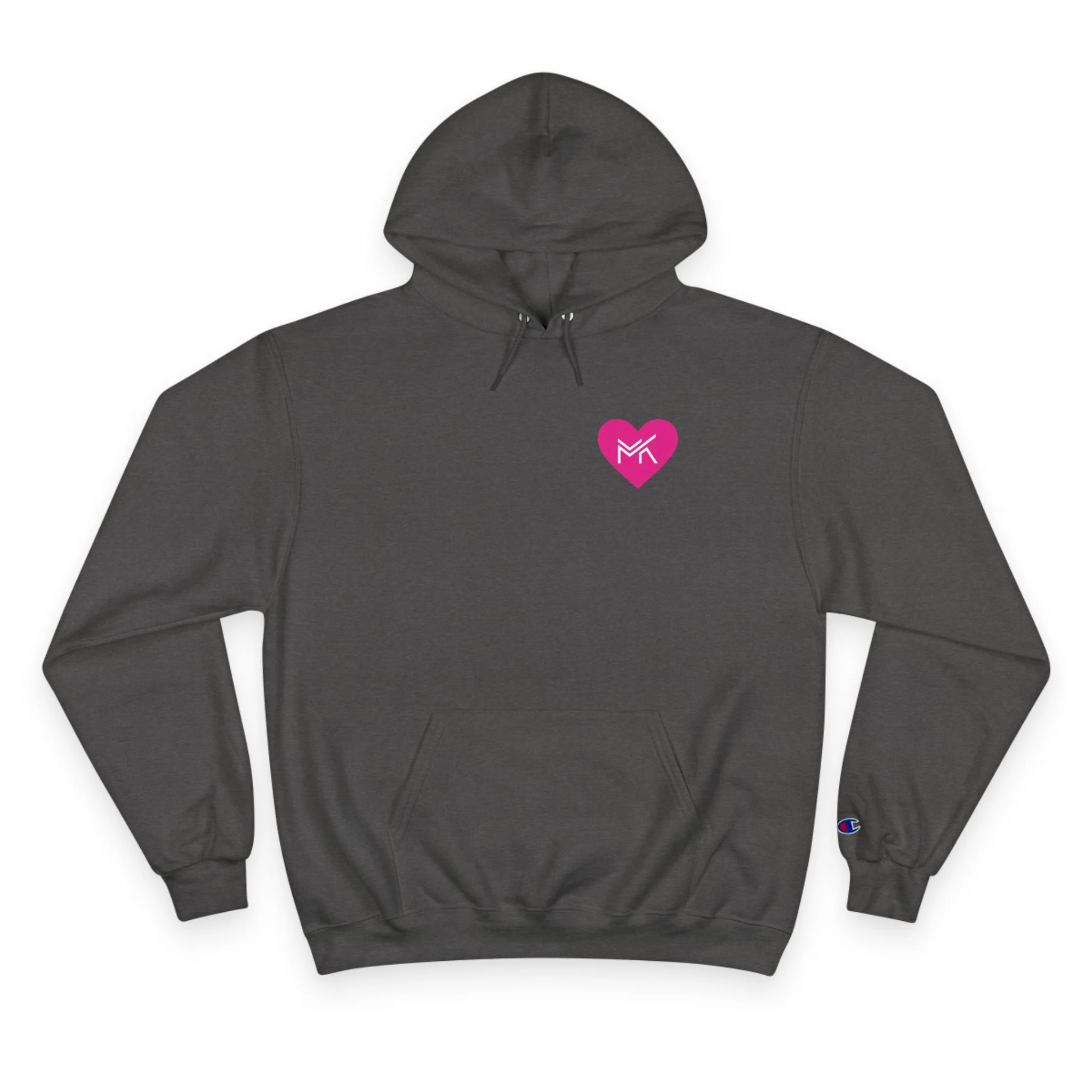 This hoodie brings a quiet, confident vibe — soft, structured, and built to be worn every day. The mid-weight Champion fabric holds shape and print while the roomy kangaroo pocket and adjustable hood make it an easy go-to for cooler commutes, late-night walks, or relaxed studio sessions. A small neon-pink heart logo rests over the chest and a larger matching mark sits between the shoulders on the back, giving it a subtle, personal feel that reads like a signature rather than loud branding. With thoughtful details — no side seams, a sewn-in care label, the Champion “C” on the sleeve, and recycled-fiber content — it’s a hoodie that looks familiar and feels considered.